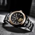 Годинник Pagani Design PD-1658 Gold-Black - це стильний чоловічий аксесуар, виготовлений з нержавіючої сталі. Його золотистий корпус та чорний браслет надають йому елегантного вигляду, а сапфірове скло забезпечує витривалість та стійкість до подряпин. Механічний механізм з автопідзаводом гарантує точність часу, а водонепроникність до 100 м стане в нагоді для активного використання. Цифри та інтервали представлені у формі індексів, а люмінесцентна підсвітка дозволяє з легкістю зчитувати час навіть у темряві. Годинник має гарантію на 12 місяців та ідеально підходить для носіння в стилі casual або класичному. Розміри корпусу становлять 40 х 40 мм, довжина ремінця - 22 см, а ширина - 21 см. Загальна вага годинника складає 160 г. Вироблено в Китаї під брендом Pagani Design.