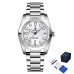 Механічний механізм з автопідзаводом гарантує точність в показах часу, доступним у вигляді стрілочного циферблата з індикацією годин, хвилин, секунд та числа. Додаткова функція календаря підкреслює практичність цієї моделі. Люмінесцентна підсвітка забезпечує легкість зчитування в темряві.