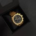 Купол круглої форми виготовлений з високоякісного металу з золотистим покриттям, а ремінець з нубукової шкіри забезпечує не лише комфорт, але й вишуканість. Завдяки водонепроникності до 30 м, ви можете не хвилюватися про вплив вологи в повсякденному житті.