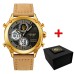 Годинник має діаметр корпуса 45,9 мм і важить лише 85 г, що робить його легким і комфортним для щоденного носіння. Корпус виготовлений з металу в золотистому кольорі, а ремінець – з якісної коричневої шкіри, що надає годиннику елегантності та стильного вигляду.