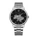Цей механічний годинник оснащений мінеральним склом та люмінесцентною підсвіткою, що забезпечує зручність використання в темряві. Циферблат з індексами чітко відображає час, хвилини та секунди. Класичний круглий корпус зі сріблястим кольором доповнює стильний браслет шириною 22 мм.