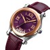 Годинник має круглий корпус діаметром 30 мм, виконаний з високоякісної сталі, з привабливим покриттям кольору рожевого золота. Фіолетовий шкіряний ремінець, довжиною 24 мм, додає йому витонченості та комфорту при носінні.