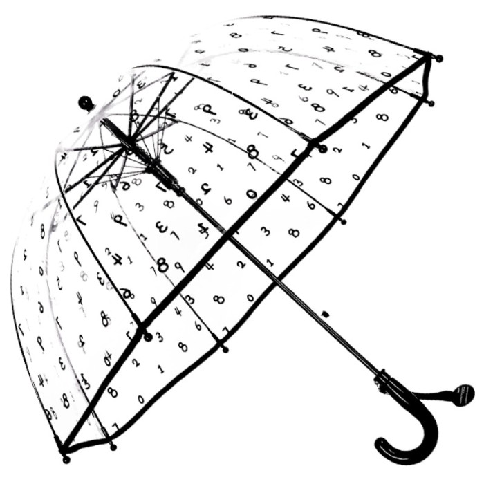 Принт: Этот зонтик имеет необычный дизайн, а именно прозрачное основание купола и декоративные элементы с цифрами.